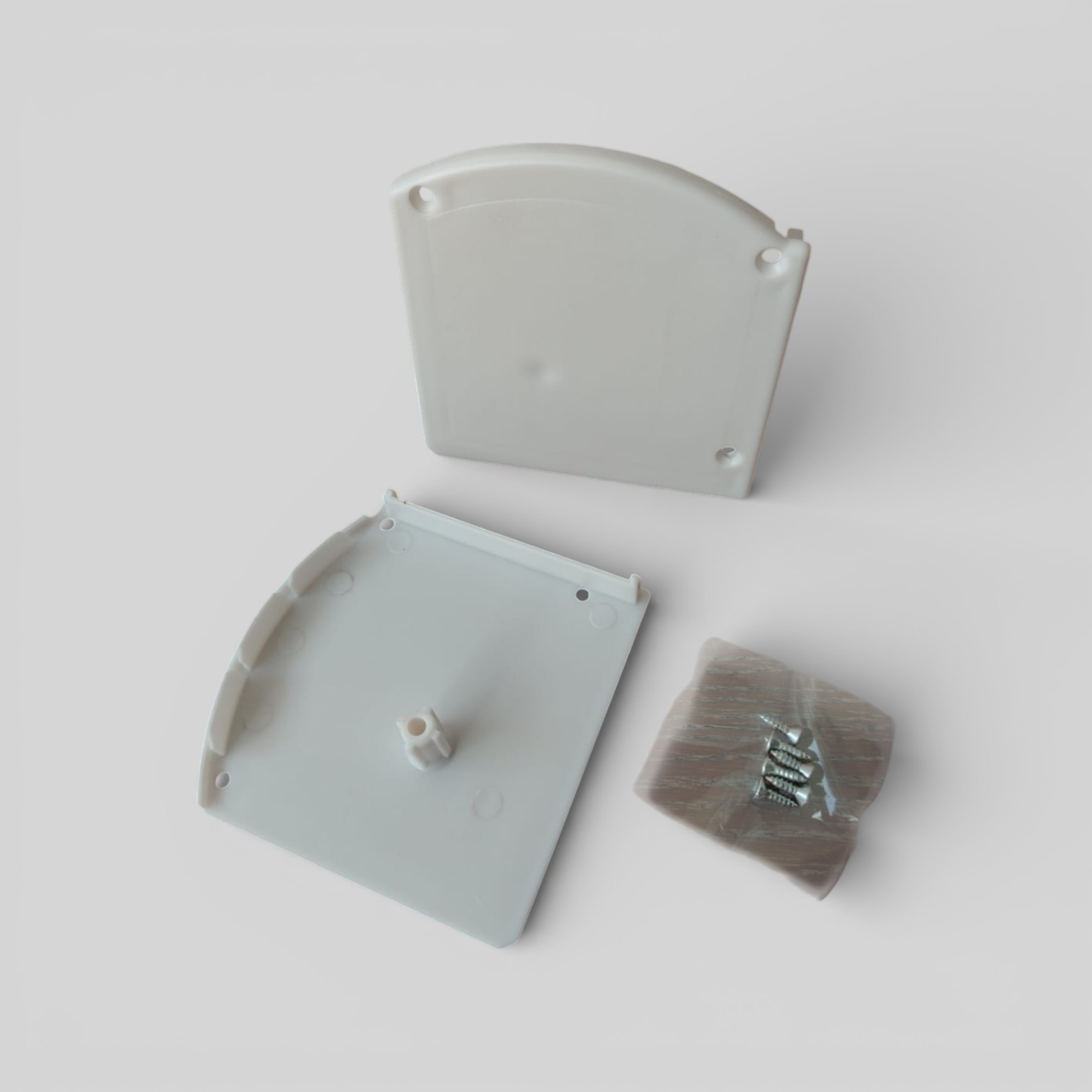 Juego de Tapas para Cofre Mediano medida exacta de 8.8 x 8.8 cm en material Plástico para Persiana Sheer / Duo / Zebra con Pivote y pijas para soporte de Mecanismo.
